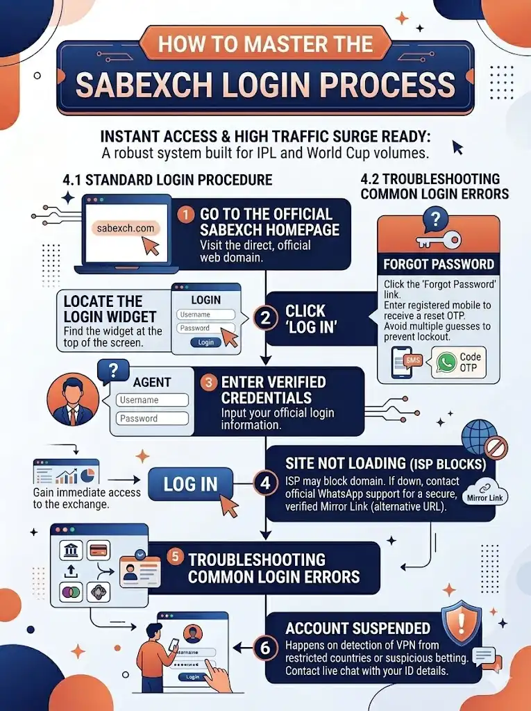 Accessing your funds and live bets should be instantaneous. The Sabexch login system is built to handle massive traffic surges, particularly during IPL season or the World Cup.